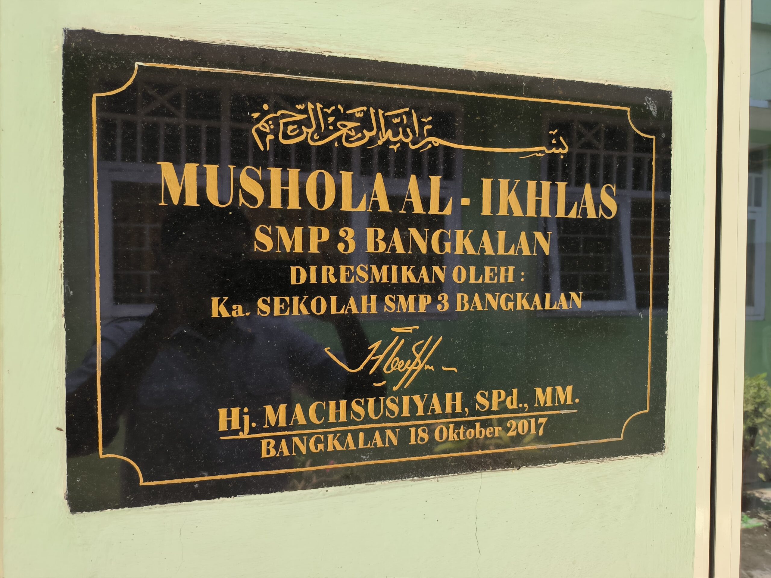Musholla “AL IKHLAS” UPTD SMP Negeri 3 Bangkalan diresmikan oleh kepala sekolah Hj. Machsusiah, S.Pd, MM