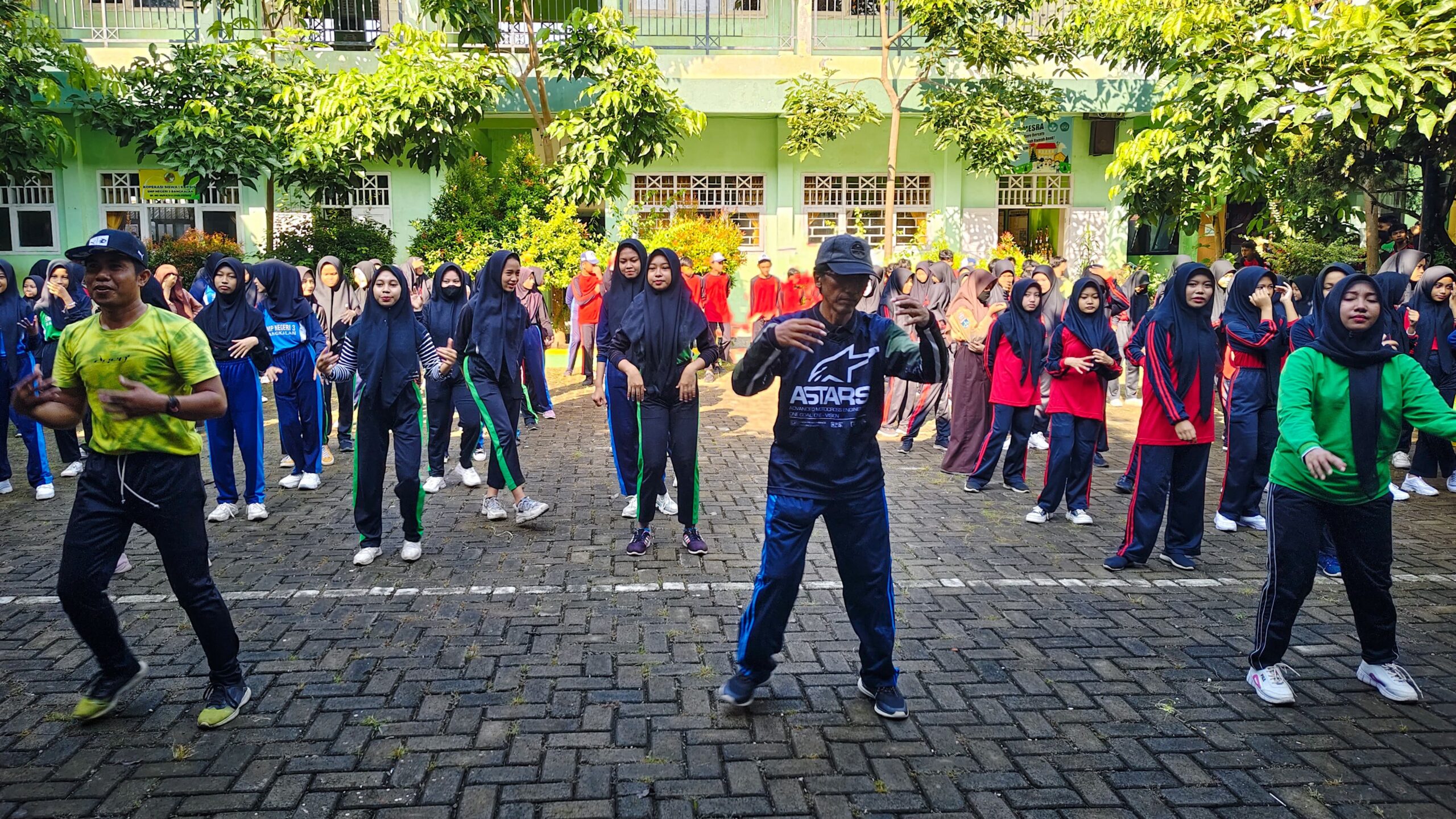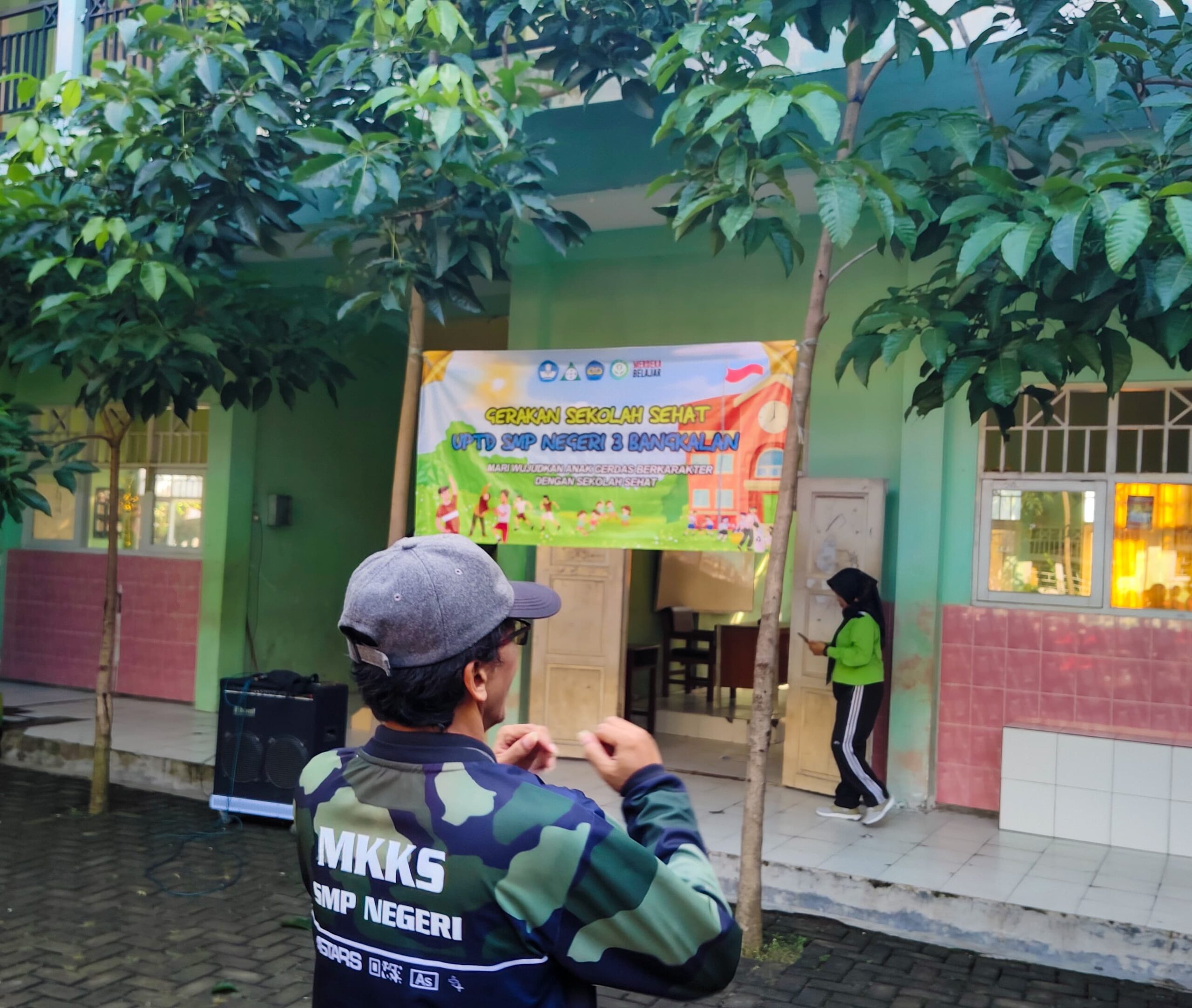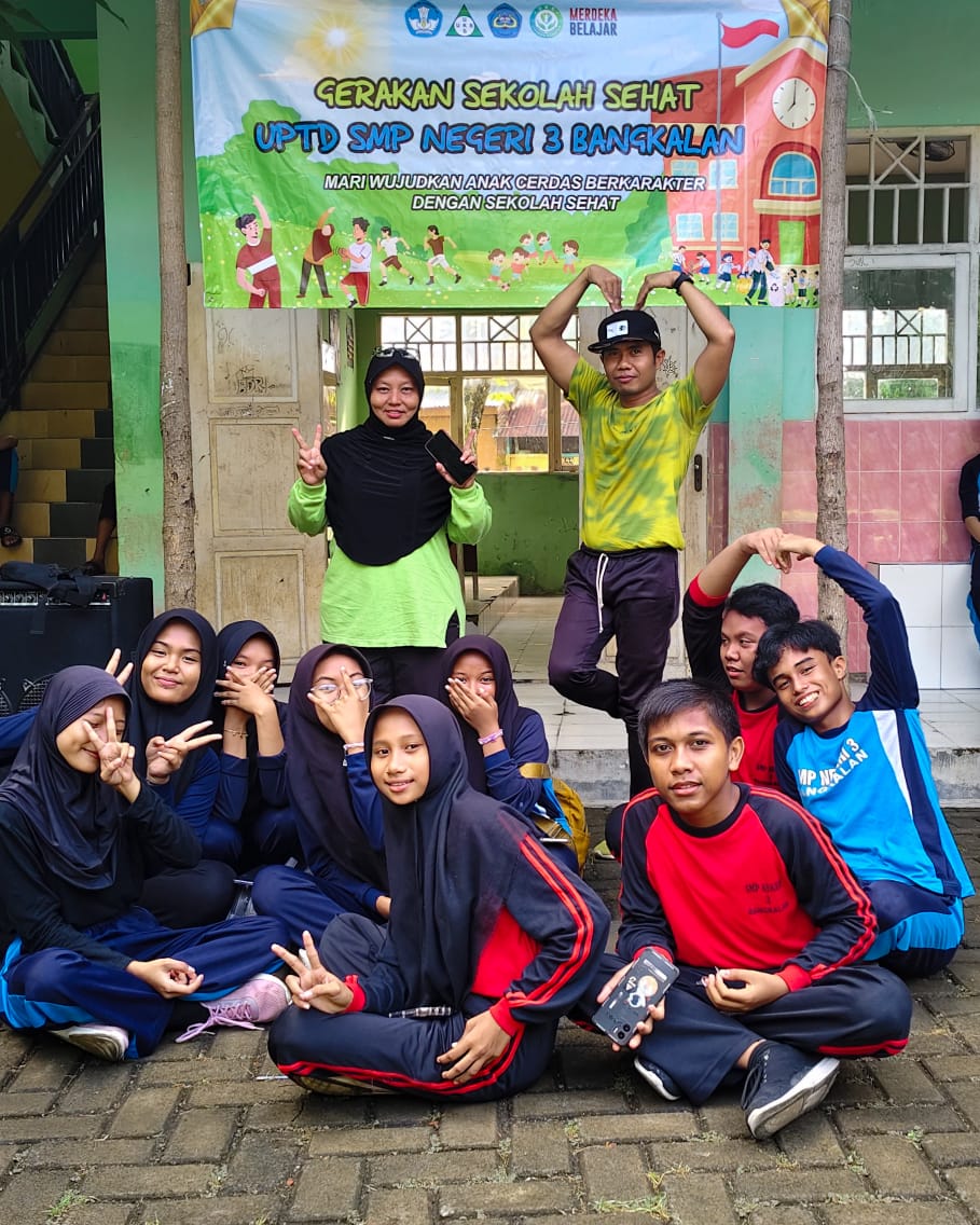 Galeri foto Gerakan Sekolah Sehat yang diadakan di UPTD SMP Negeri 3 Bangkalan berupa Senam Pagi & Bersih Lingkungan