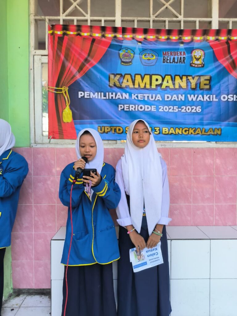 Dalam Kampanye OSIS : Calon Ketua dan Wakil Ketua Tahun 2025 UPTD SMP Negeri 3 Bangkalan ini berlangsung seru dan penuh antusiasme, masing-masing pasangan calon menampilkan program-program unggulan yang menarik dan ajang bakat yang berbeda.