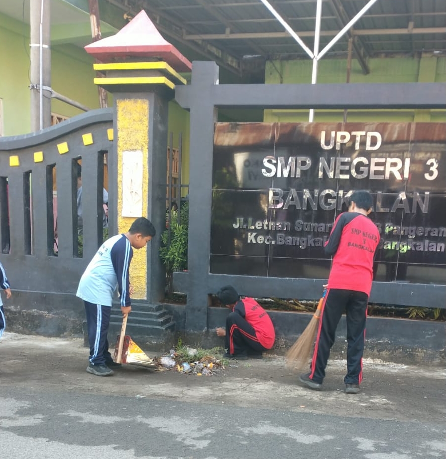 Dalam rangka Hari bersih-bersih sedunia (World Cleanup Day), siswa seluruh murid UPTD SMPN 3 Bangkalan pada hari Jum’at tanggal 19 September 2025 datang ke sokalah untuk melakukan kegiatan bersih-bersih agar menjadikan sekolah yang sehat, maka selayaknya lingkungan harus dipelihara dengan baik. Lingkungan termasuk air, tumbuhan, tanah serta penataan ruang yang hendaknya dipelihara dari berbagai macam pencemaran.