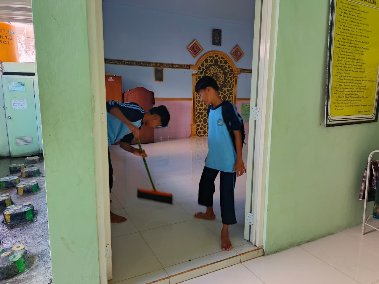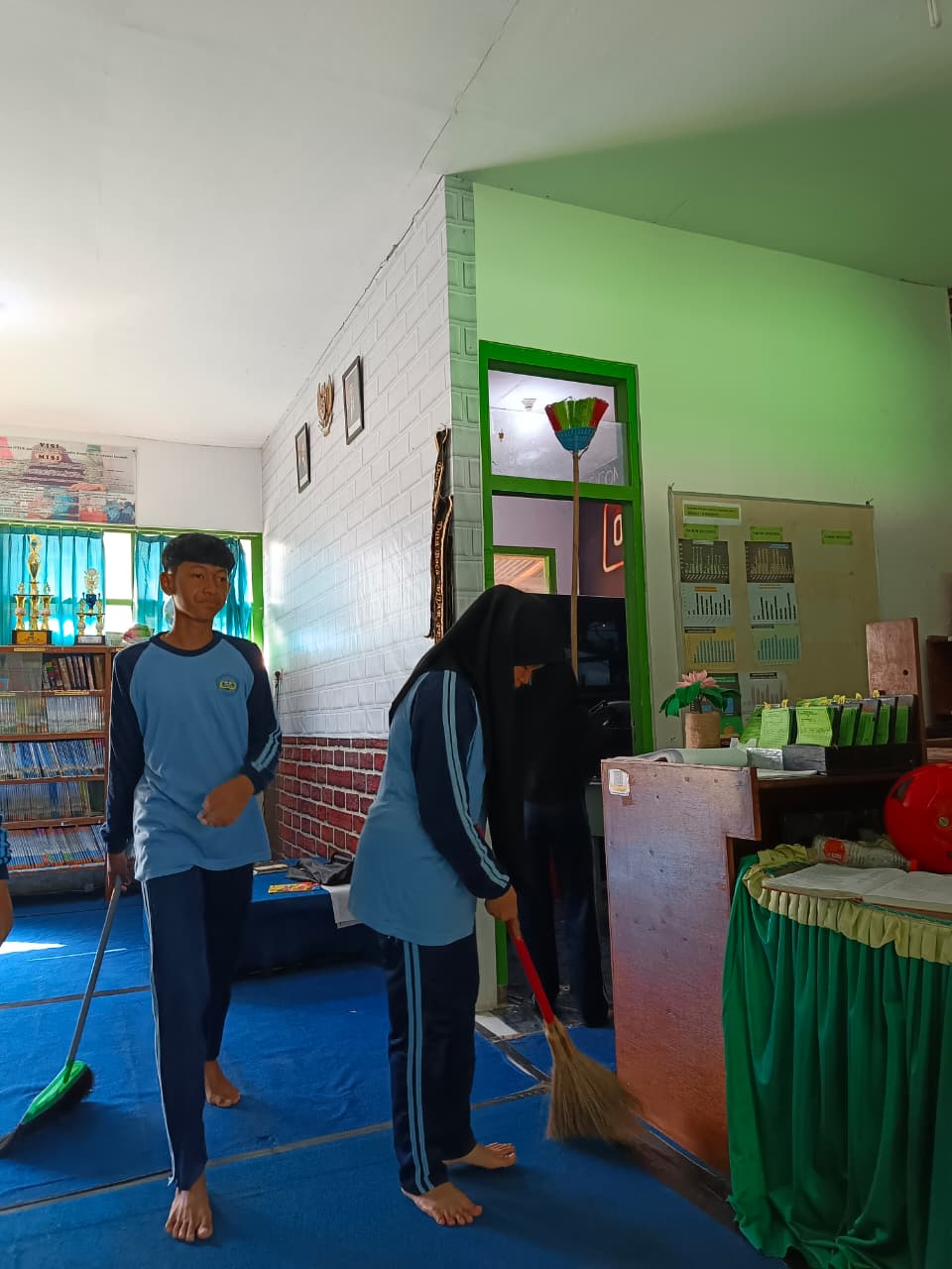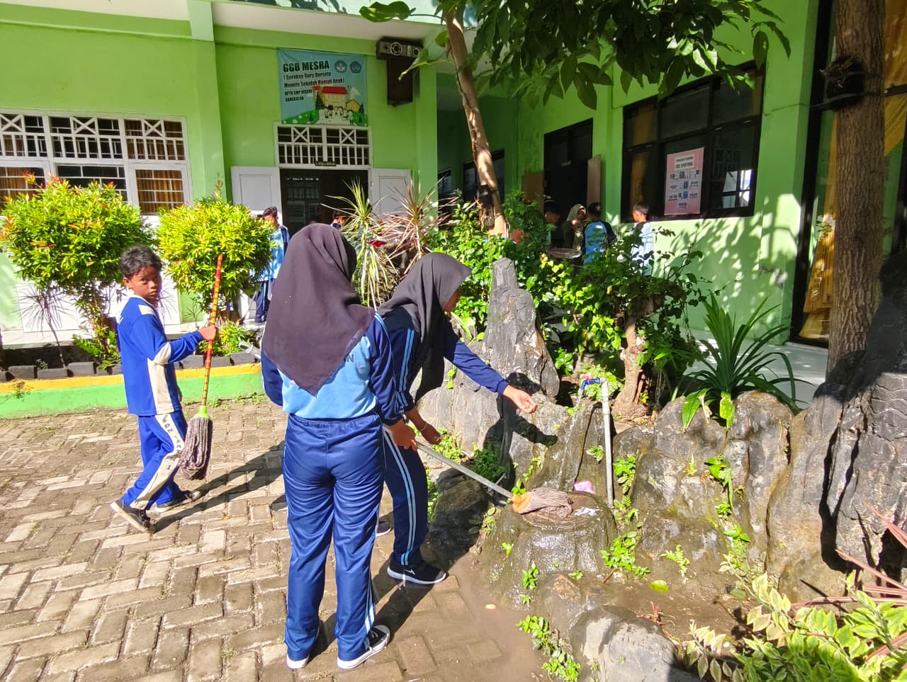 Kegiatan bersih bersih sekolah adalah upaya rutin yang melibatkan seluruh warga sekolah (siswa, guru, karyawan) untuk menciptakan lingkungan sekolah yang bersih, sehat, dan nyaman, seperti melalui piket kelas, kerja bakti, “Jumat Bersih”, atau program lainnya untuk menjaga kebersihan ruang kelas, halaman, taman, dan fasilitas umum. Kegiatan ini bertujuan menanamkan karakter peduli lingkungan, menumbuhkan rasa memiliki, dan meningkatkan semangat belajar.