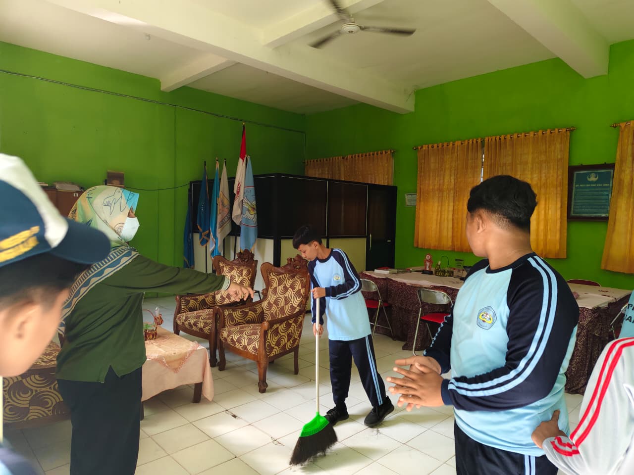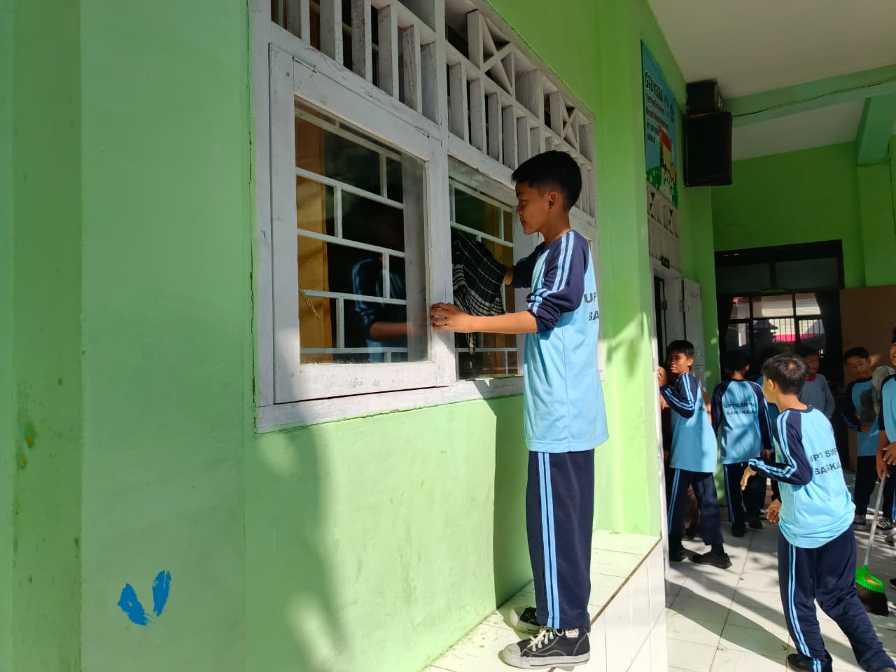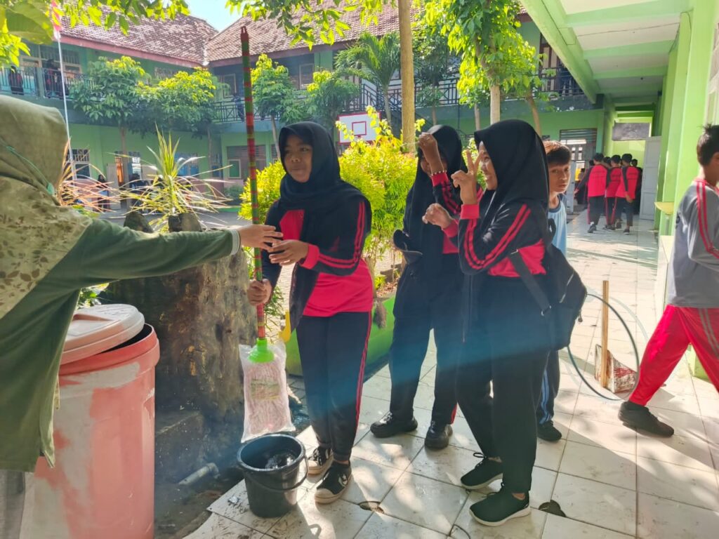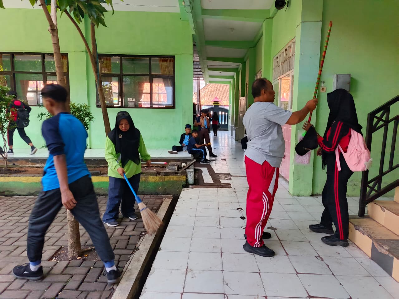 Kegiatan bersih bersih sekolah adalah upaya rutin yang melibatkan seluruh warga sekolah (siswa, guru, karyawan) untuk menciptakan lingkungan sekolah yang bersih, sehat, dan nyaman, seperti melalui piket kelas, kerja bakti, “Jumat Bersih”, atau program lainnya untuk menjaga kebersihan ruang kelas, halaman, taman, dan fasilitas umum. Kegiatan ini bertujuan menanamkan karakter peduli lingkungan, menumbuhkan rasa memiliki, dan meningkatkan semangat belajar.