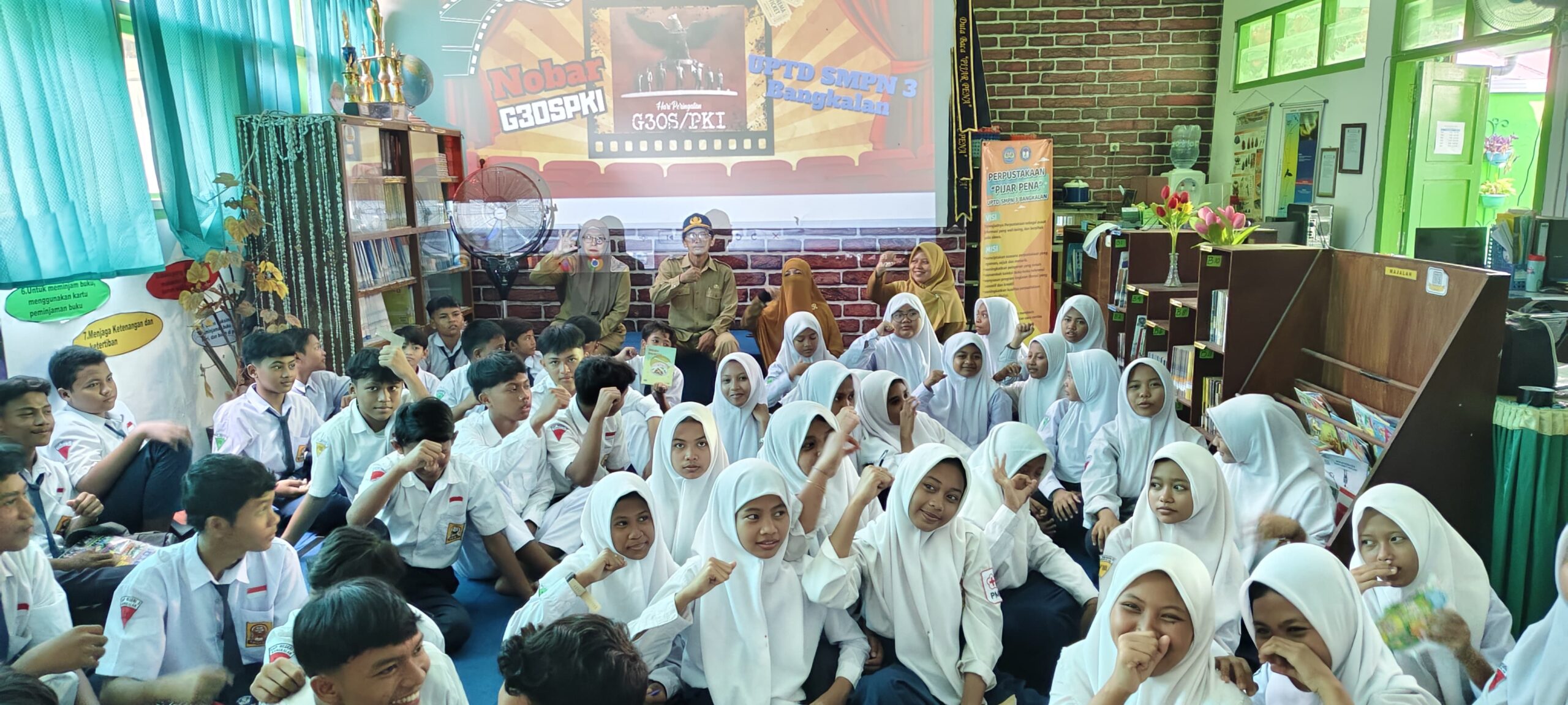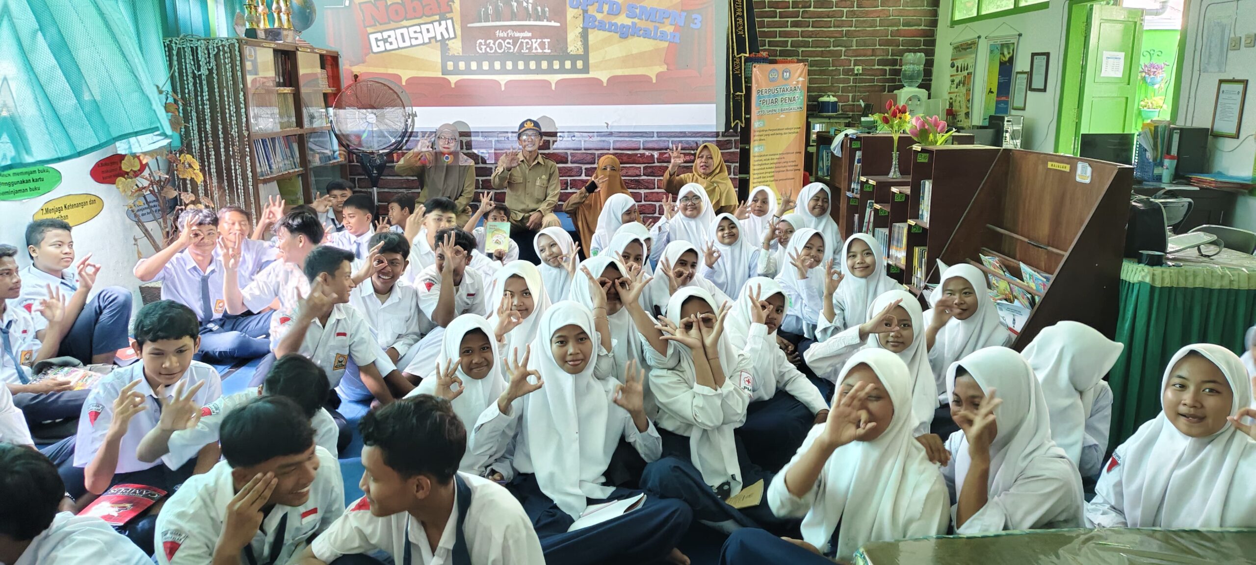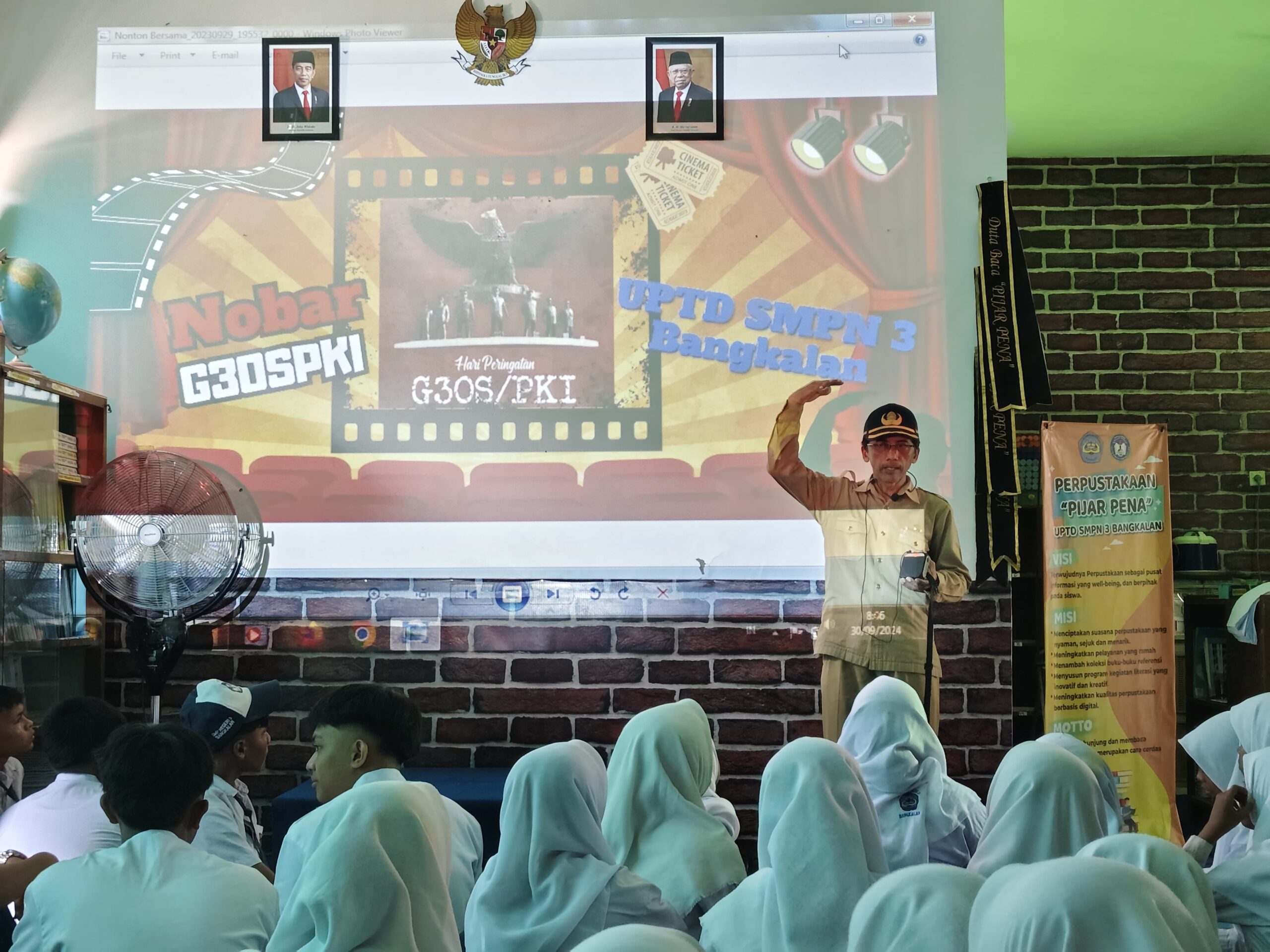 Dalam memperingati dan mengenang hari G30SPKI, SMP Negeri 3 Bangkalan melaksanakan nonton bersama / NOBAR Film G30SPKI dengan siswa kelas 7, 8 dan 9.