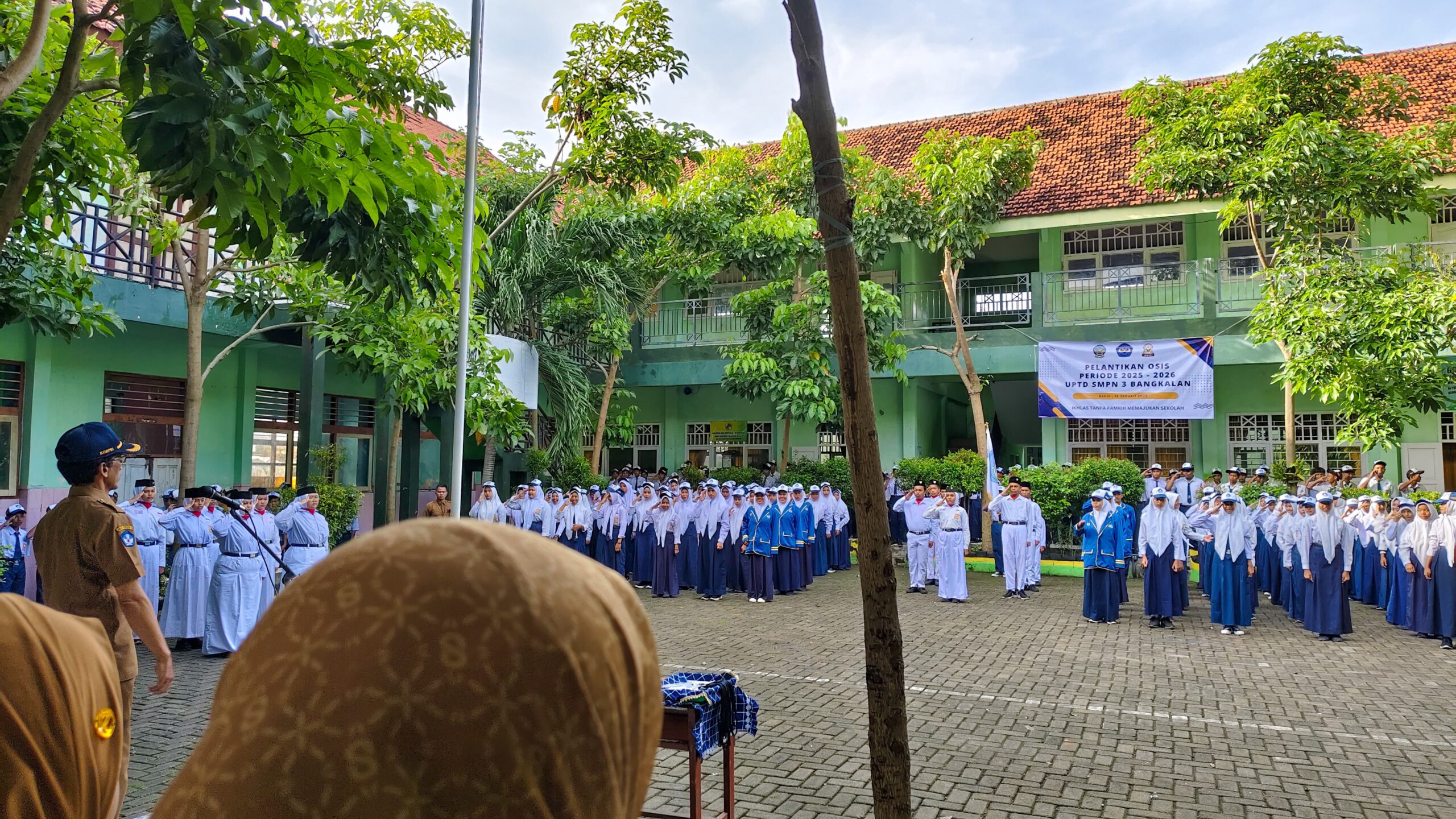 Senin, 14 Januari 2024 kemarin, UPTD SMPN 3 Bangkalan telah melasanakan pelantikan pengurus OSIS baru periode tahun 2025/2026, yang mana pelantikan ini dilaksanakan secara langsung dan dihadiri oleh bapak kepala sekolah Drs. ACHMAD HUZAINI, M.Si bertempatan di lapangan upacara. Pelantikan Pengurus OSIS di pimpin langsung oleh kepala sekolah, turut dihadiri pula oleh jajaran dewan guru beserta staf tata usaha. Pelantikan berlangsung khidmat.