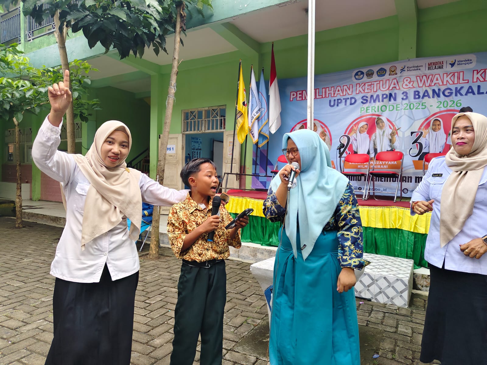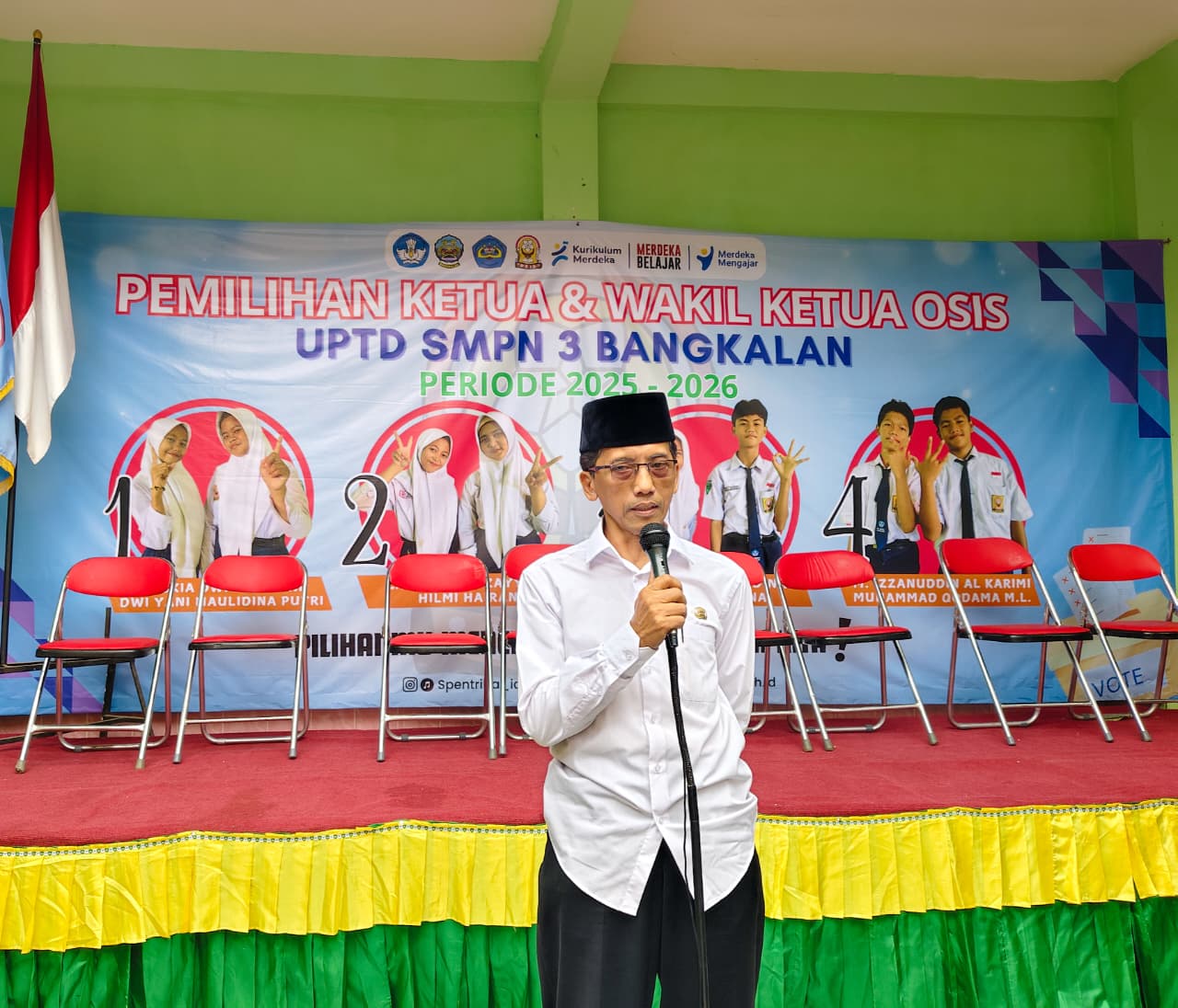UPTD SMP Negeri 3 Bangkalan menyelenggarakan pemilihan Ketua dan Wakil Ketua OSIS periode 2025/2026 pada Jumat (10/01/2025). Pemilihan ini dilakukan melalui proses demokrasi yang memberikan kesempatan bagi setiap siswa-siswi SPENTRIBA untuk berpartisipasi secara aktif dalam pemungutan suara.