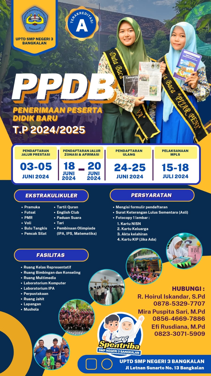 Kegiatan Penerimaan Peserta Didik Baru (PPDB) tahun 2024 rencana akan dilaksanakan pada tanggal 30 Juni sampai 3 Juli (pendaftaran) dilanjutkan verifikasi dan pengumuman dan daftar ulang pada bulan Juli